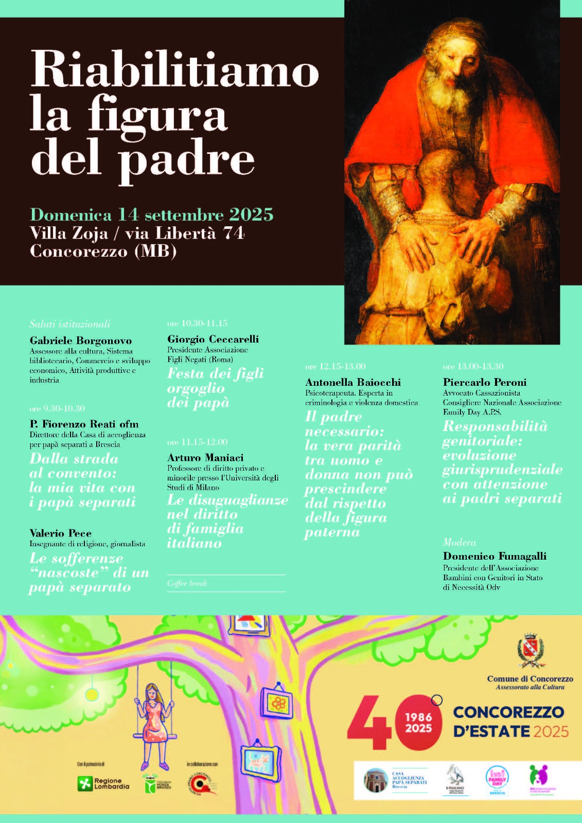 Il 14 settembre 2025, Villa Zoja a Concorezzo (MB) ospiterà un convegno intitolato "Riabilitiamo la figura del padre".